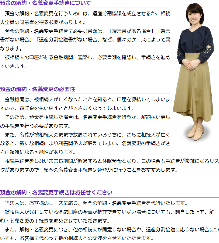 預金・貯金の解約・名義変更